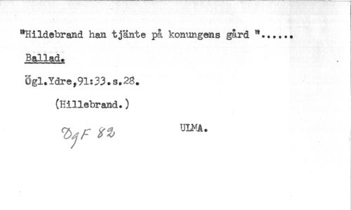 //// "Hildebrand han tjänte på konungens gård ".....* //// ! //// - //// i //// Ballad. //// Cgl.Ydre,91:33.s.28. //// i //// (Hillebrand.) //// i //// i ////