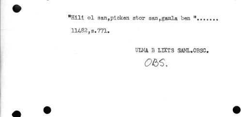 //// "Hill ol san,picken stor san,gamla ben //// 11482,s.771. //// ULMA B LBtTS SAKL.OBSC. ////