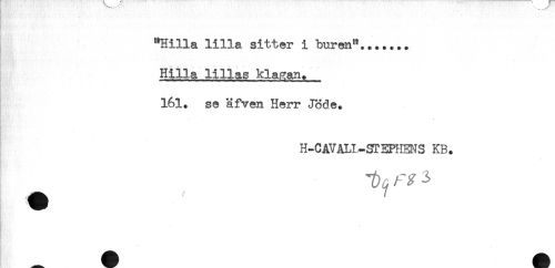 //// ' //// "Hilla lilla sitter i buren"....... //// Hilla lillas klagan. //// ....... A ....... „( //// 161. se äfven Herr Jöde. //// H-CAVALI-STEPHENS KB. ////