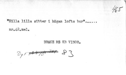 //// 't //// t //// : //// "Hilla lilla sitter i högan lofts bur"...... //// nr.A2.mel. //// DRAKE MS KB VISOR. //// t ////