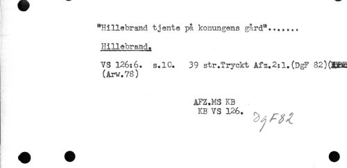 //// "Hillebrand tjente på konungens gård"....... //// Hillebrand. //// VS 126:6. s.lC. 39 str.Tryckt Afz.2:l.(DgF 82)(3B //// (Arv.78) //// AFZ.MS KB ////