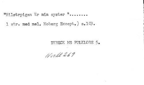 //// "Hilstrpigan är min syster ........ //// 1 str. med mel. Moberg Except.) s.103. i //// I //// t //// DYBECK MS FOLKMRE ' ////
