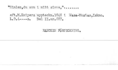 //// "Himlen,du som i mitt sinne,"......... //// eft.M.Knipers uppteckn.1848 i Uasa-Mustas,Is^o. //// L.9.4—--s. Del II.nr.887. //// Rål^CKS-J ^RrECKNING, ////