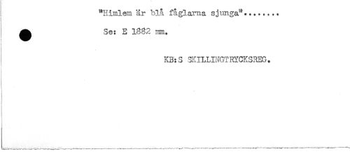 //// "Himlem är blå fåglarna sjunga"........ //// Se: E 1882 mm, //// KB:S SKILLINGT RYCK3REG. //// ! //// ! ////