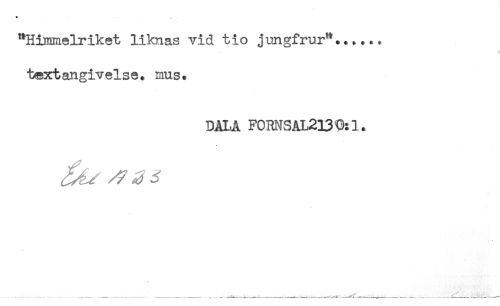 //// "Himmelriket liknas vid tio jungfrur"...... //// tiextangivelse. mus. //// DALA FCWSAL213'0:1. ////