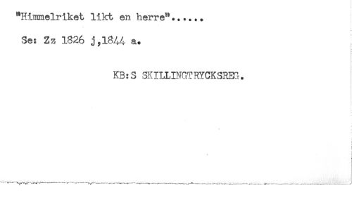 //// "Himmelriket likt en herre"...... ! //// Se: Zz 1826 j,l844 a. //// ! //// KB:S 3KILLINGTRYCKSREG. //// ! //// ^ ! //// } ////