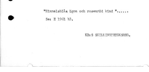 //// "Himmelsblåa ögon och rosenröd kind "...... //// ^ Se: E 1901 b3. //// KB:S SKILUNGTRYCKSREG. //// 1 //// s //// i //// ( //// - __ ____^__ ////