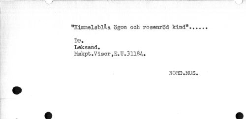 //// "Himmelsblåa ögon och rosenröd kind"*..... //// Dr. //// Leksand. //// Mskpt. V i s or, E. U. 31184. //// NORD.MUS. ////