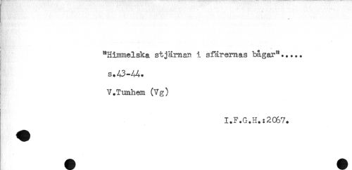 //// ** //// "Himmelska stjärnan i sfäremas bågar"..... //// V.Tunhem (Vg) //// I.F.G.H,:2067. ////