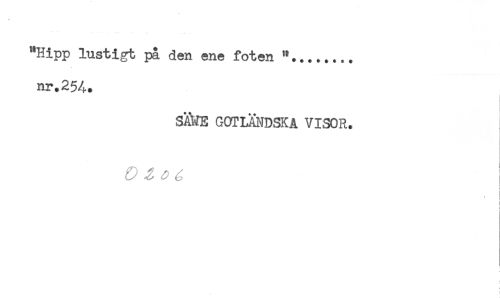 //// **Hipp lustigt på den ene foten //// nr.254. //// SAME GOTLANDSKA VISOR. //// } //// ! //// i ////