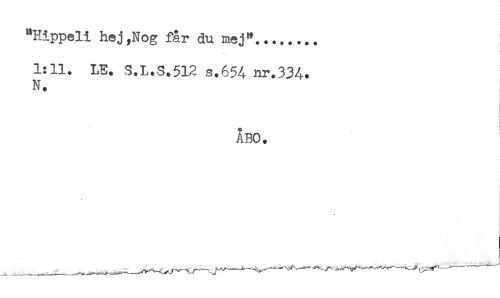//// "Hippeli hej,Nog får du mej"........ //// 1:11. LE. S.L.S.512 s.654 nr.33A. //// N. //// ÅBO. ////