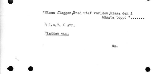//// "Hissa flaggan,ärad utaf verlden,Hissa den i //// högsta toppi "....... //// B l.s.7. 6 str. //// . //// Flätan opp. //// RÅ. ////