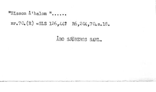 //// "Hissom å'halom ..... //// nr.70.(R) =SLS 126,AA? R6,2(A,70.s.l8. //// ÅBO SJCBEms SAML. ////