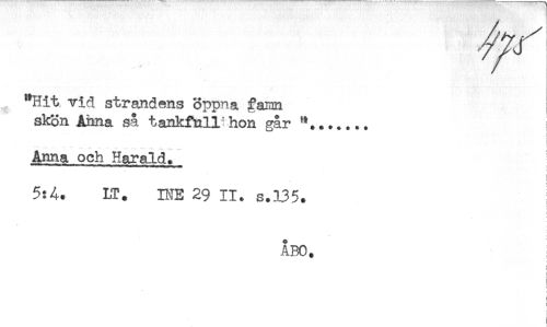 //// „ "Hit vid strandens öppna #amn //// skön Anna så tankfull'hon går ..........i //// Anna och Harald. //// 5:4. IT. INE 29 II. s.135. //// ÅBO. //// ! //// ! //// t //// t //// < ////