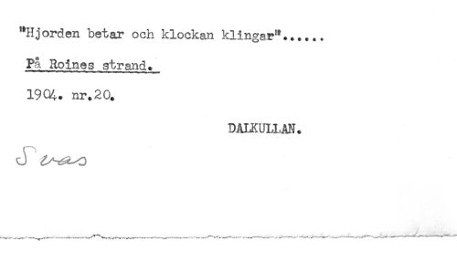 //// "Hjorden betar och klockan klingar"....,. //// På Roines strand. //// 1904. nr.20. //// DÅLKULlÅN. ////