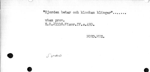 //// "Hjorden betar och klockan klingar"....... //// utan prov. //// E.U.21ll8.Visor.IV,s.493* //// NORD.MUS. ////