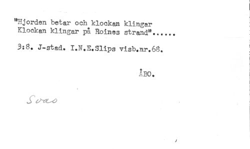 //// "Hjorden betar och klockan klingar //// Klockan klingar på Roines strand"...... //// 3:8. J-stad. I.N.E.Slips visb.nr.68. ! //// t //// ABO. //// < //// ! //// y ////