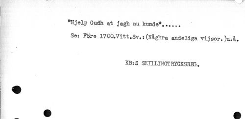 //// "Hjelp Gudh at jagh nu kunde"...... //// Se: Före 1700.Vitt.Sv.:(Någhra andeliga vijsor.)u.å. //// KB:S SKTLLINGTRYCKSRm. ////