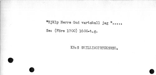 //// "Hjälp Herre Gud vartskall jag "..... //// * - , * //// Se: (Före 1700) l60CLt.g. //// KB:S SKILLINGTRYCKSREG. ////