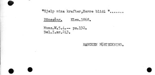 //// "Hjälp mina krafter,Herre blidt *....... //// Bönesån,^. Elen. 1868 . //// Muns.W+5.4-.— ps.132. //// Del.I.nr.243. //// RANCKEN FÖRTECKNING. ////