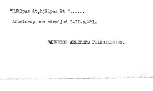 //// "Hjälpas åt,hjälpas åt //// Arbetsrop och härmljnd 1-11.s.261. //// RgHI^BERG ARBETETS FOLKDIKTNING. ////