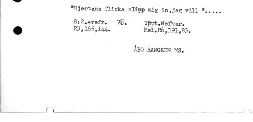 //// 'hjertans flicka slapp mig in,jag vill //// . //// . //// 8:2.+refr. VC. Uppt.Wefvar. //// ^ R3,165,144. Mel.R6,191,83. //// ÅBO RANCKEN MS. //// i //// t //// t //// i //// i_______ r^i______ . _ _______, ////