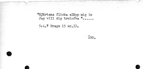 //// ^Hjärtans flicka släpp mig in //// Jag vill dig trolofva //// 5:A.? Brage 15 nr.33. //// ? //// ÅBO. ////