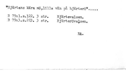//// "Hjärtans kära mö,lilla vän på hjärterö"..... //// B 79:l.s.l22. 3 str. Hjärtevalsen. //// B 79:3.s.2Q3. 3 str. Hjärteröva^sen. //// RA. ////