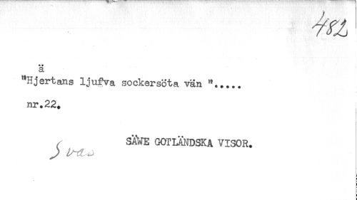 //// * * //// a //// ^Hjertans ljufva sockersota vän //// ny.22. //// ^ SAWE GOTLÄNDSKA VISOR. ////