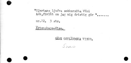 //// "Hjertans ljufva sockersöta Vän^ //// Åck^förlåt om jag mig dristig gör //// nr.22. 3 str. //// Aktenskaps-Wjsa. //// S&JE GOTLiiNDSKÅ VISOR. ////