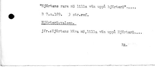 //// "Hjärtans rara mö lilla vän uppa hjärterö"..... //// o //// ^ B 7.S.189. 3 str.ref. //// Hjärterö-valsen. //// jfr.:Hjärtans kära mö,lilla vän uppa Hjärterö.... //// : //// RA. ////