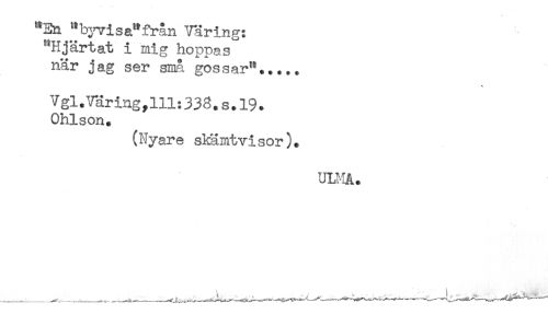 //// tEn ^nrisa"från Varing: //// ^Hjärtat i mig hoppas //// när jag ser sma gossar",.... //// Vgl.^ring,lll:338.s.l9. //// Ohlson. //// (Nyare sKämtvi sor). //// ULMA. ////