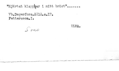 //// "Hjärtat klapprar i mitt bröst"....... //// Vb.Degerf ors.Ä212. s.,17. //// Pettersson.I. //// ULMA. ////