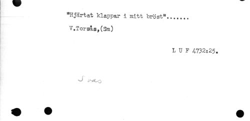 //// "Hjärtat klappar i mitt bröst"....... //// V.Torsås,(Sm) //// L U F 4732:2$. ////