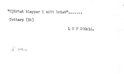 //// "Hjärtat klappar i mitt bröst"....... //// Tottarp (Sk) //// L U F 200:1A. ////