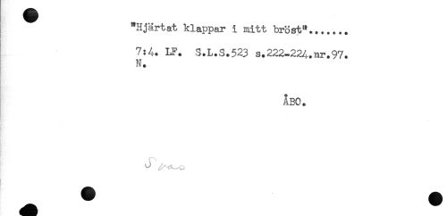 //// "Hjärtat klappar i mitt bröst"....... //// { //// 7:4. LF. S.L.S.523 s.222-224.nr.97. //// N. //// ÅBO. //// ! ^ /^o ////