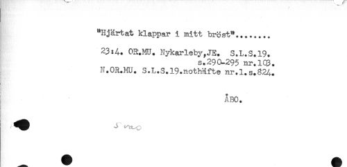 //// "Hjärtat klappar i mitt bröst"........ //// 23:4. 03.MU. Nykarleby,JE. S.L.S.19. //// s.290-295 nr.lQ3. //// N.OR.MU. S.L.S.19.nothäfte nr.l.s.824. //// . //// ÅBO. ////