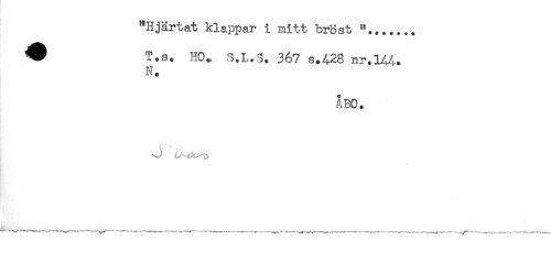 //// "Hjärtat klappar i mitt bröst "....... //// ^ T.s. HO.. S.I,.S. 367 s.4-28 nr.144. //// N. //// ÅBO. ////