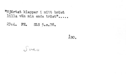 //// "Hjärtat klappar i mitt bröst //// lilla vän min enda tröst"..... //// 23:4. PE. SLS 5.S.78. //// ABO. ////