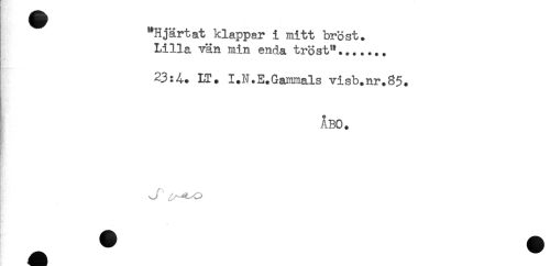 //// "Hjärtat klappar i mitt bröst. //// Lilla vän min enda trbst"....... //// 23:4. LT. I.N.E.Gammals visb.nr.85. //// ÅBO. //// ny å //// ^^^^ ^^ - ////