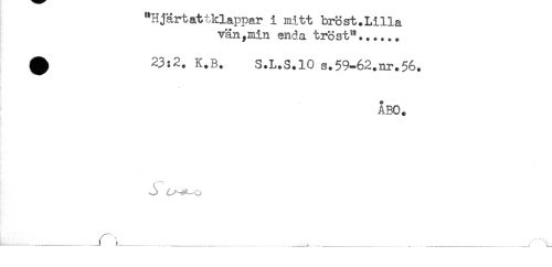 //// "Hjartattklappar i mitt bröst.Lilla //// van,min enda tröst"...... //// ^ 23:2. K.B. S.L.S.10 s.59-62.nr.56. //// . //// ABO. //// K //// - //// j" ) ___ ______ _ _ ___ ////