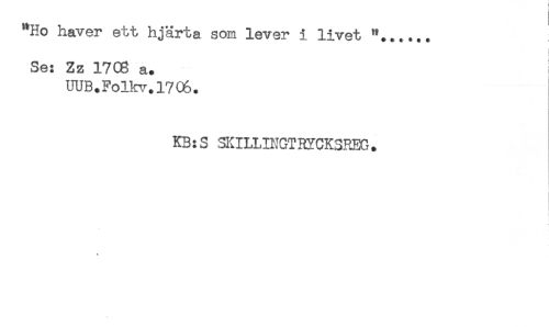 //// "Ho haver ett hjärta som lever i livet //// Se: Zz 1706 a. //// UUB.Folkv.1706. //// KB:S SKILLINGTHYCKSREG. //// ! ////