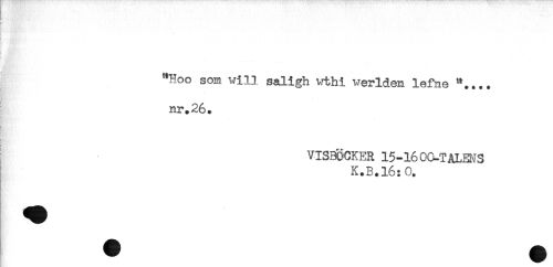 //// "Hoo som will saligh vrthi %verlden lefne //// nr.26. //// ! //// - ' ^ //// Hi', //// VISBÖCKER 15-16 OM? ALENS //// K.B.16:0. ////