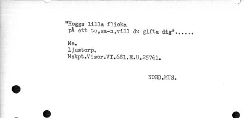 //// "Höggs lilla flicka //// pa ett to,sa-n,vill du gifta dig'*...... //// Me. //// Ljustorp. //// Mskpt.Visor .VI.681.E.U.25761. //// NORD.MUS. ////