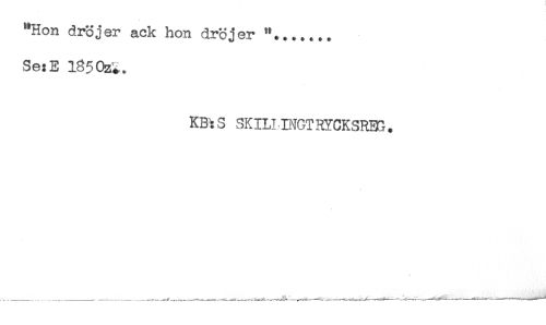 //// "Hon dröjer ack hon dröjer //// Se:E 135 Oz^. //// KBtS SKILIINGTRYCKSREG. ////