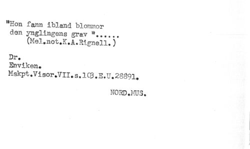 //// "Hon fann ibland blommor //// den ynglingens grav "...... //// (Mel.not.K.A.Rignell.) //// Dr. //// Enviken. //// Mskpt.Vi sor.VIl.s.103.E.U.28891. //// NOUD.HUS. ////