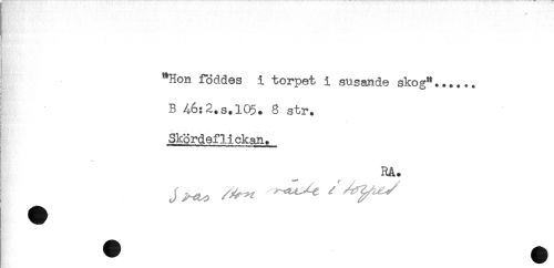 //// "Hon föddes i torpet i susande skog"...... //// B 46:2.s.l05. 8 str. //// Skördeflickan. //// RA. ////