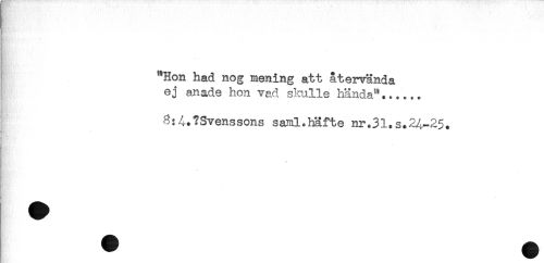 //// "Hon had nog mening att återvända //// ej anade hon vad skulle hända"*..... //// 3:4.?Svenssons saml.häfte nr.31.s*24-25. //// ; //// * ////