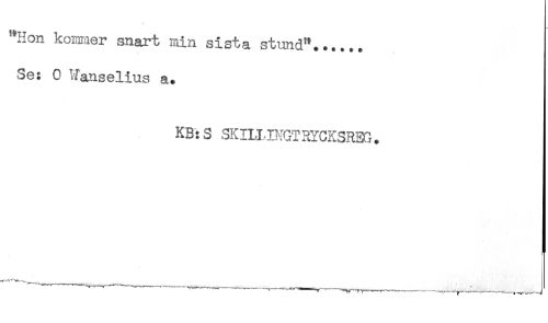 //// "Hon kommer snart min sista stund"...... //// Se: C Wanselius a. //// KB: 3 SKILHHGT RYCKSREG. //// <——----,-,_f -v ////