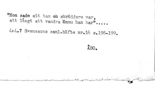 //// "Hon sade att han en skräddare var //// att långt att vandra ännu han har"..... - //// 4:4.? Svenssons saml.häfte nr.16 s.198-199, //// ABO. ////